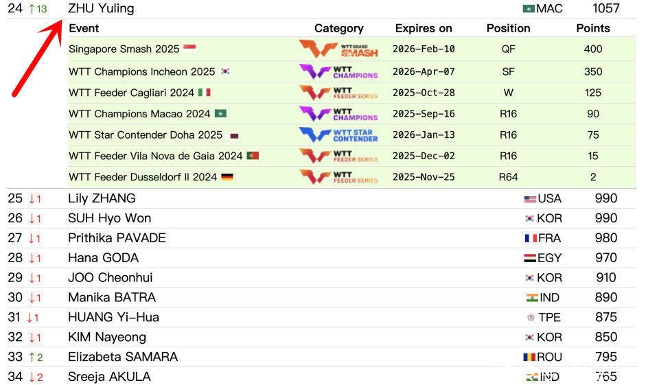 2024年9月,千里寂三年的朱雨玲以中国澳门队选手身份重返国外赛场,复出首站,她在WTT卡利亚里支线赛一举夺冠,决赛中打败的敌手恰是这次太原站的敌手横井咲樱,尽管复出初期面对体能、技有时适等多重挑战,朱雨玲凭借对乒乓球的心疼和塌实的基本功飞快找回情状,2024年仁川冠军赛中,她闯入四强,天下名次从零起步跃升至第24位,成为国外乒联名次系统中攀升速率最快的选手之一